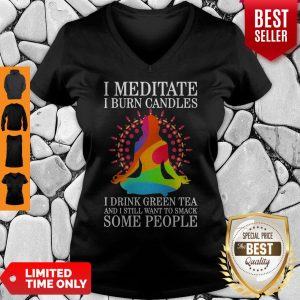 Explore more about the Girl Yoga I Meditate I Burn Candles I Drink Green Tea And I Still Want To Smack Some People Shirt and make it yours today!