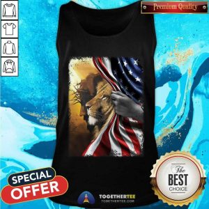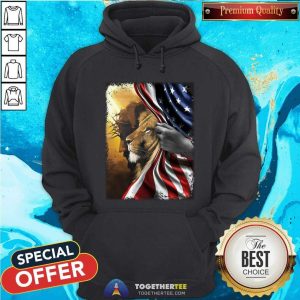 God And Lion Behind American Flag Shirt