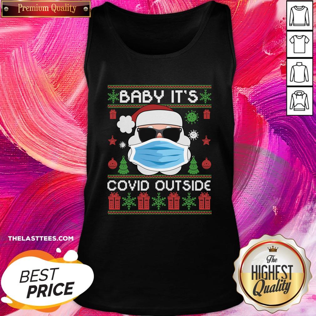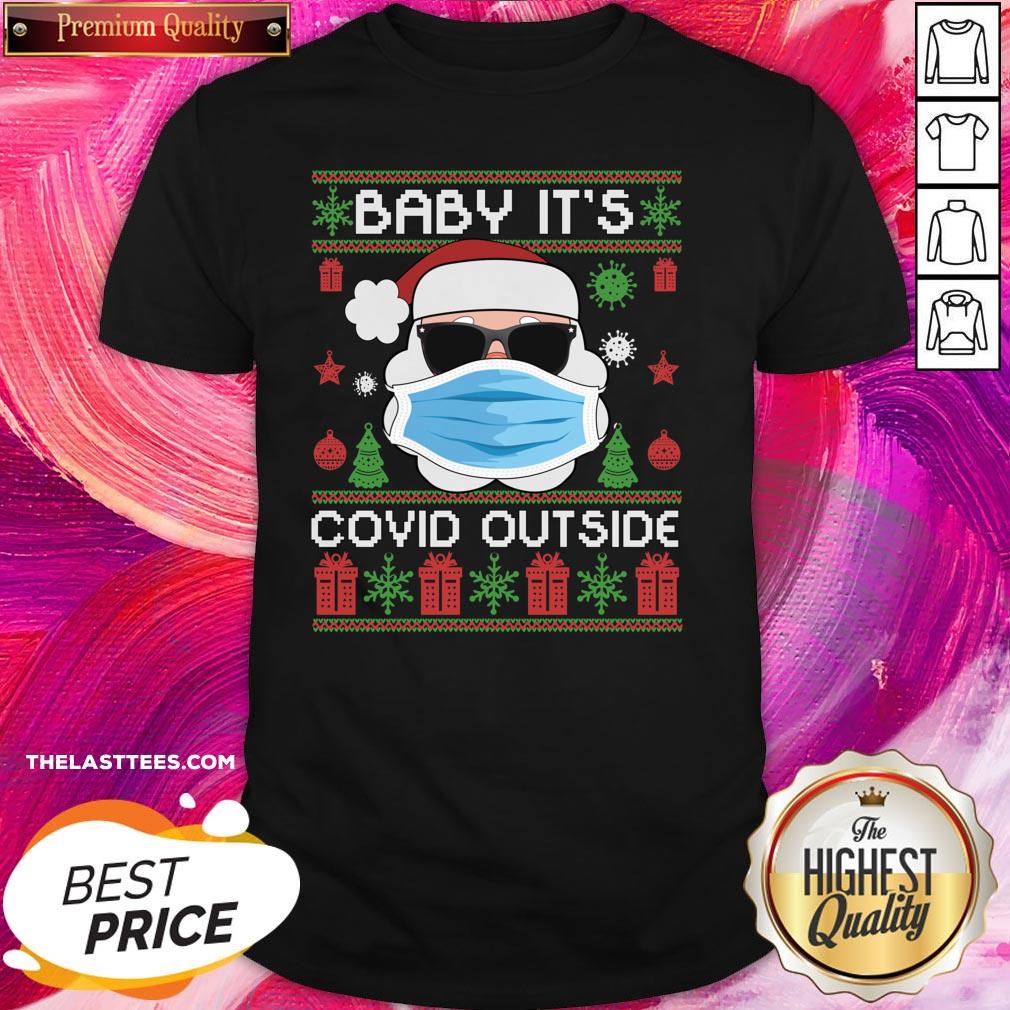 Good Baby It’s Covid Outside Funny Santa Wearing Mask Ugly Christmas Shirt