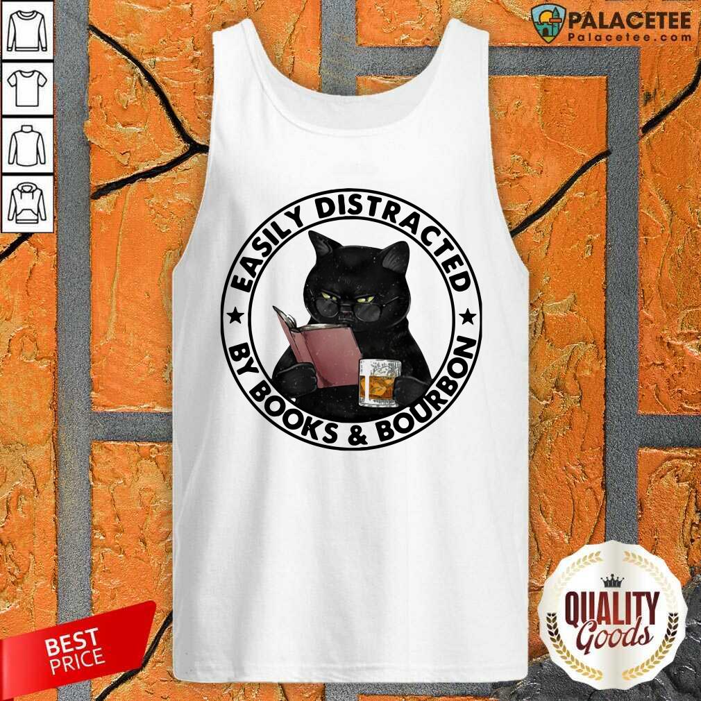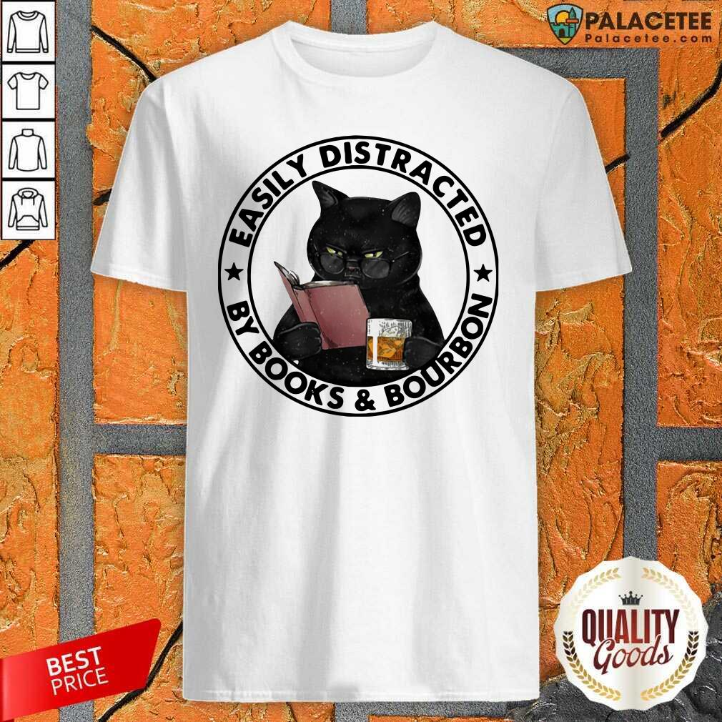 Good Easily Distracted By Books And Bourbon Cat Shirt