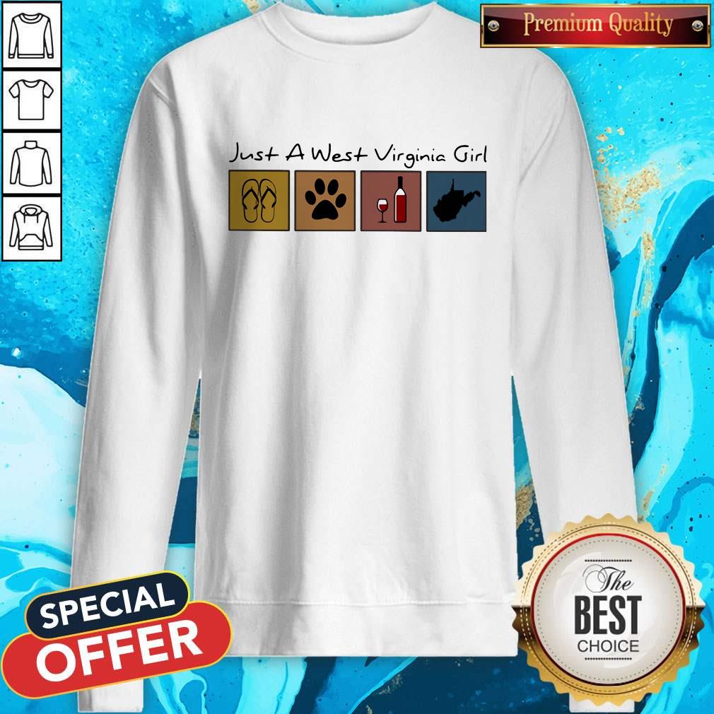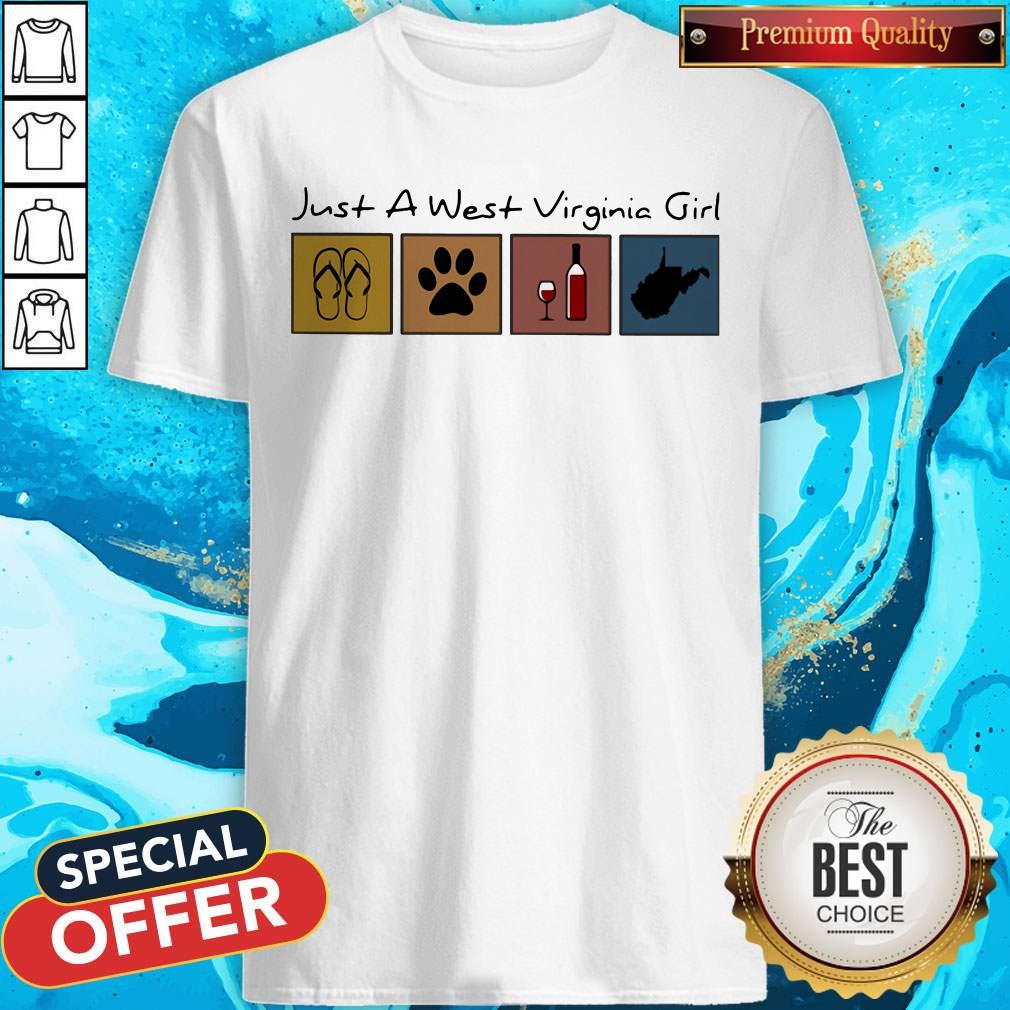 Good Just A West Virginia Girl Flip Flop Dog Wine West Virginia Map Shirt