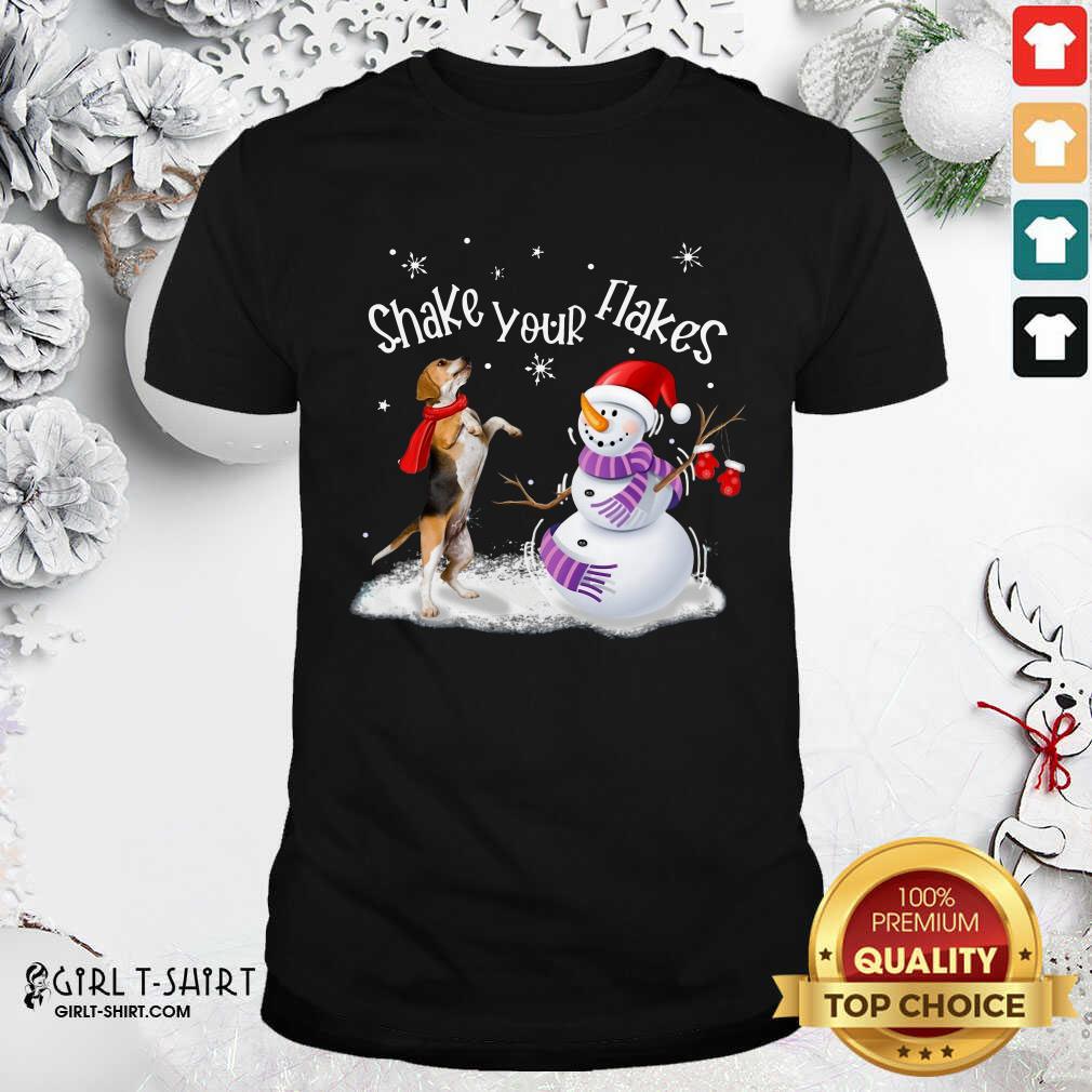 Great Beagle And Snowman Shake Your Flakes Merry Christmas Shirt