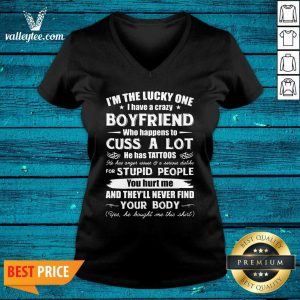 Great I’m The Lucky One I Have A Crazy Boyfriend Who Cuss And Has Tattoo Hurt Me Never Find Your Body Shirt