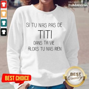 In summary, the “Great Si Tu Nas Pas De TITI Dans Alors Shirt” is a unique blend of humor and style, crafted for comfort, making it a wardrobe essential for the modern individual. Its catchy slogan and quality fabric allow it to serve as both a casual staple and a statement piece for various occasions. The shirt is not only tailored for those with a playful personality but also for anyone seeking an easy yet stylish outfit choice. It makes for a great gift for friends and family who enjoy fun and trendy apparel. With its durability and easy maintenance, this shirt is a valuable addition to any clothing collection, confirming that style does not need to be serious to be impactful.