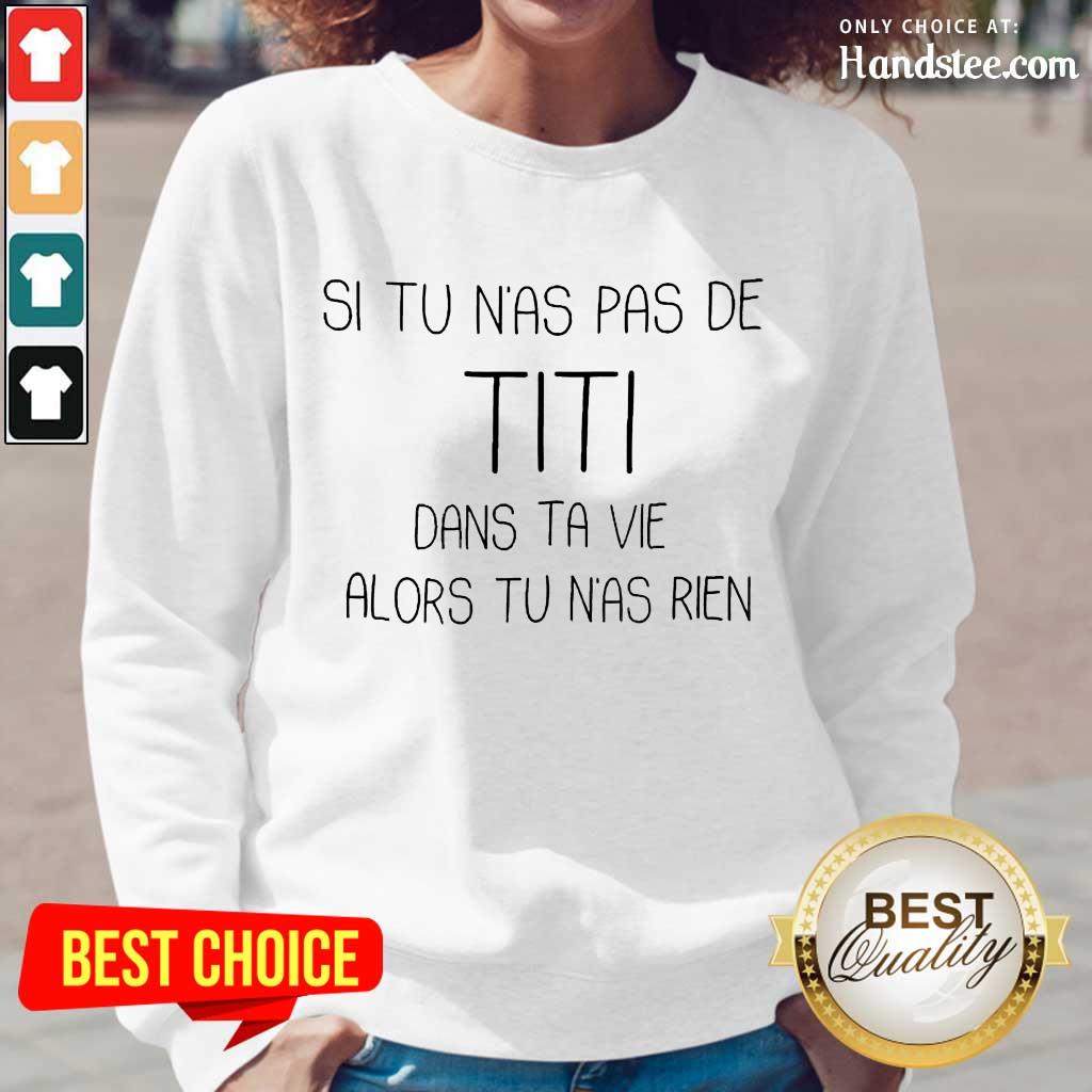 The “Great Si Tu Nas Pas De TITI Dans Alors Shirt” is a trendy and playful apparel choice that merges style with a hint of humor. This shirt captures attention with its catchy slogan and artistic design, making it perfect for a variety of casual occasions. Crafted for comfort and style, it’s more than just a shirt – it’s a statement piece that resonates with those who appreciate clever fashion.