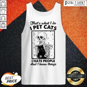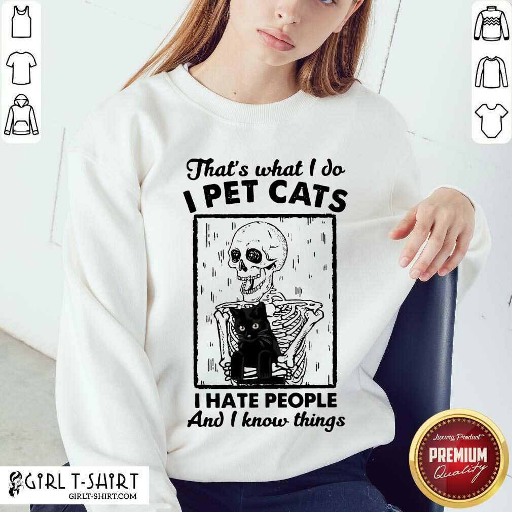Great Skeleton Hug Cat Thats What I Do I Pet Cats I Hate People And I Know Things Shirt