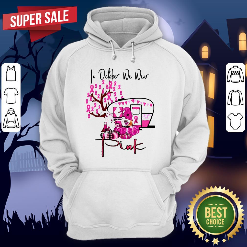 Halloween Gnomes In October We Wear Pink Pumpkin Cancer Awareness Shirt