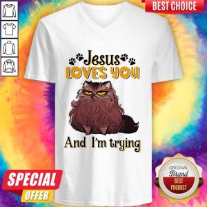 Happy Cat Brown Jesus Loves You And Im Trying Shirt