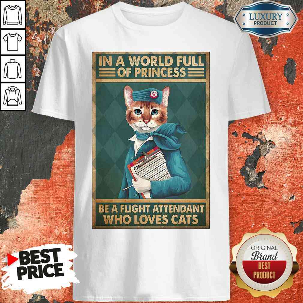 Happy Cat Flight Attendants Easily Distracted In A World Full Of Princess Be A Flight Attendant Who Loves Cats Shirt