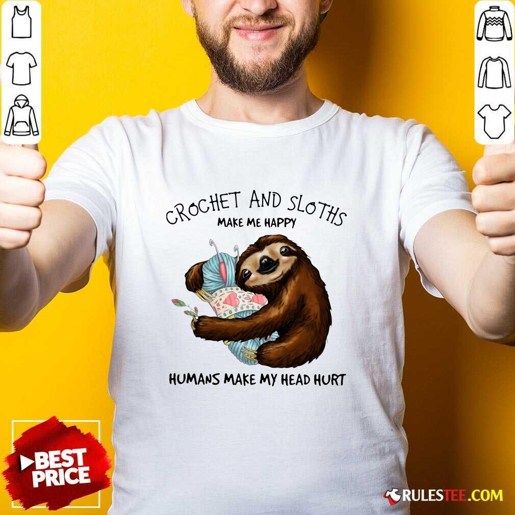 Explore more about the Happy Crochet And Sloths Make Me Happy Humans Make My Head Hurt Shirt and make it yours today!