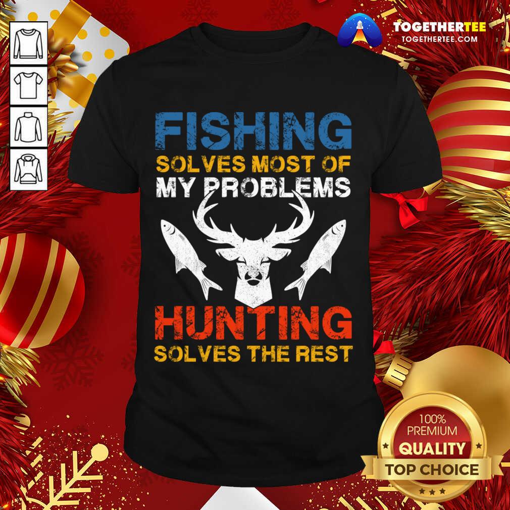 Happy Fishing And Hunting Gift Christmas Humor Hunter Cool T-Shirt