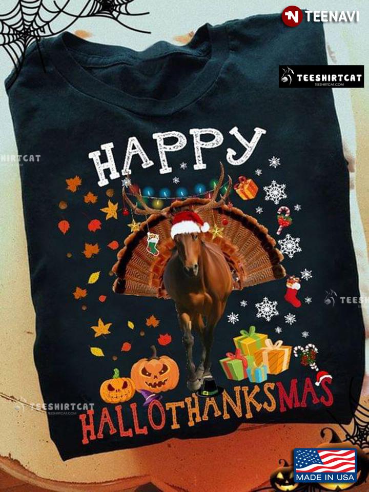 Happy HalloThanksMas Horse Pumpkin Thanksgiving Halloween Christmas T-Shirt