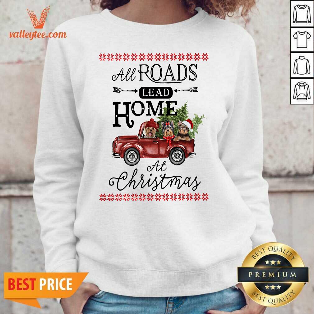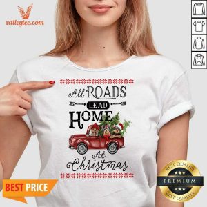 Hot All Roads Lead Home At Christmas Red Truck Bird Xmas Shirt