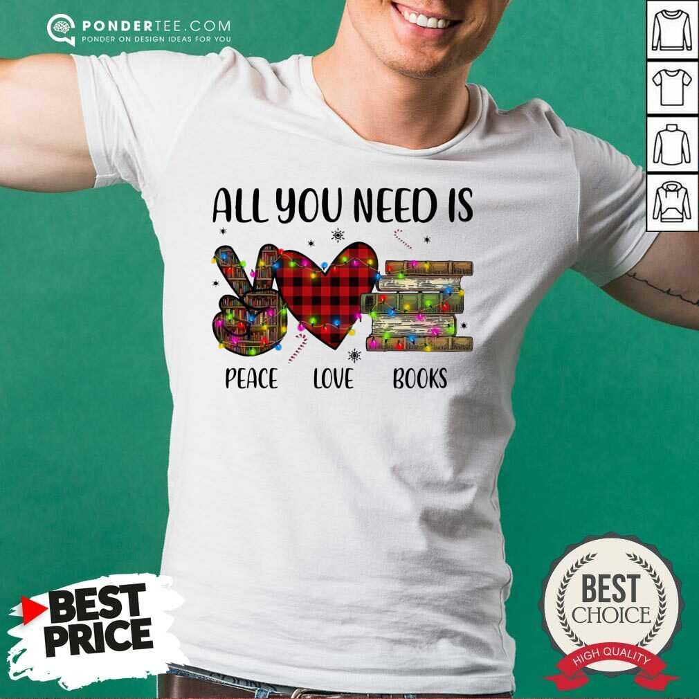 Hot All You Need Is A Peace Love Books Merry Christmas Light Shirt