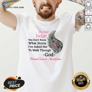 Hot Do Not Judge You Do not Know What Storm I have Asked Her To Walk Through God Breast Cancer Awareness Shirt