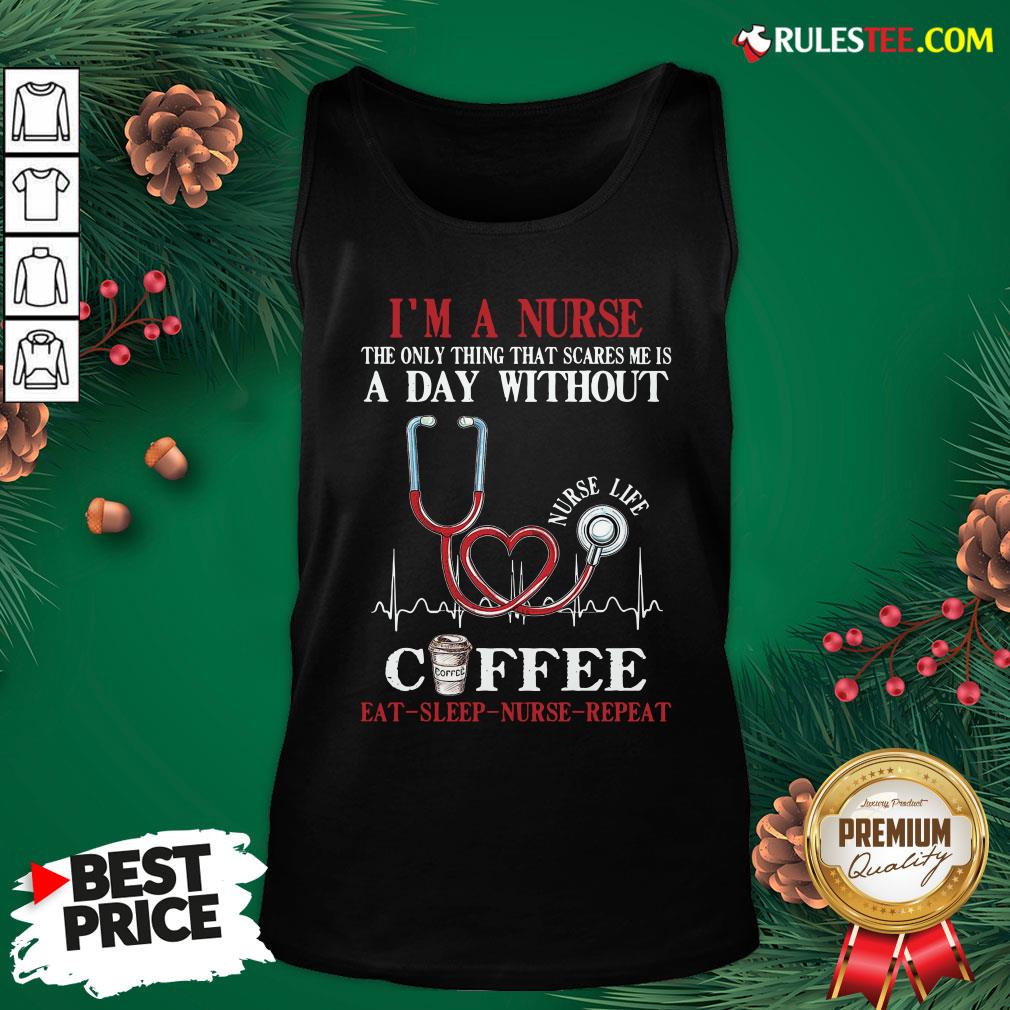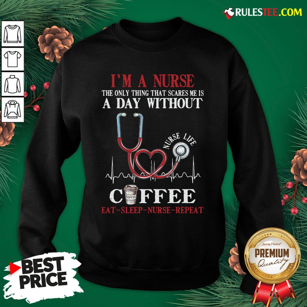Hot Im A Nurse The Only Thing That Scares Me Is A Day Without Coffee Eat Sleep Nurse Repeat Shirt