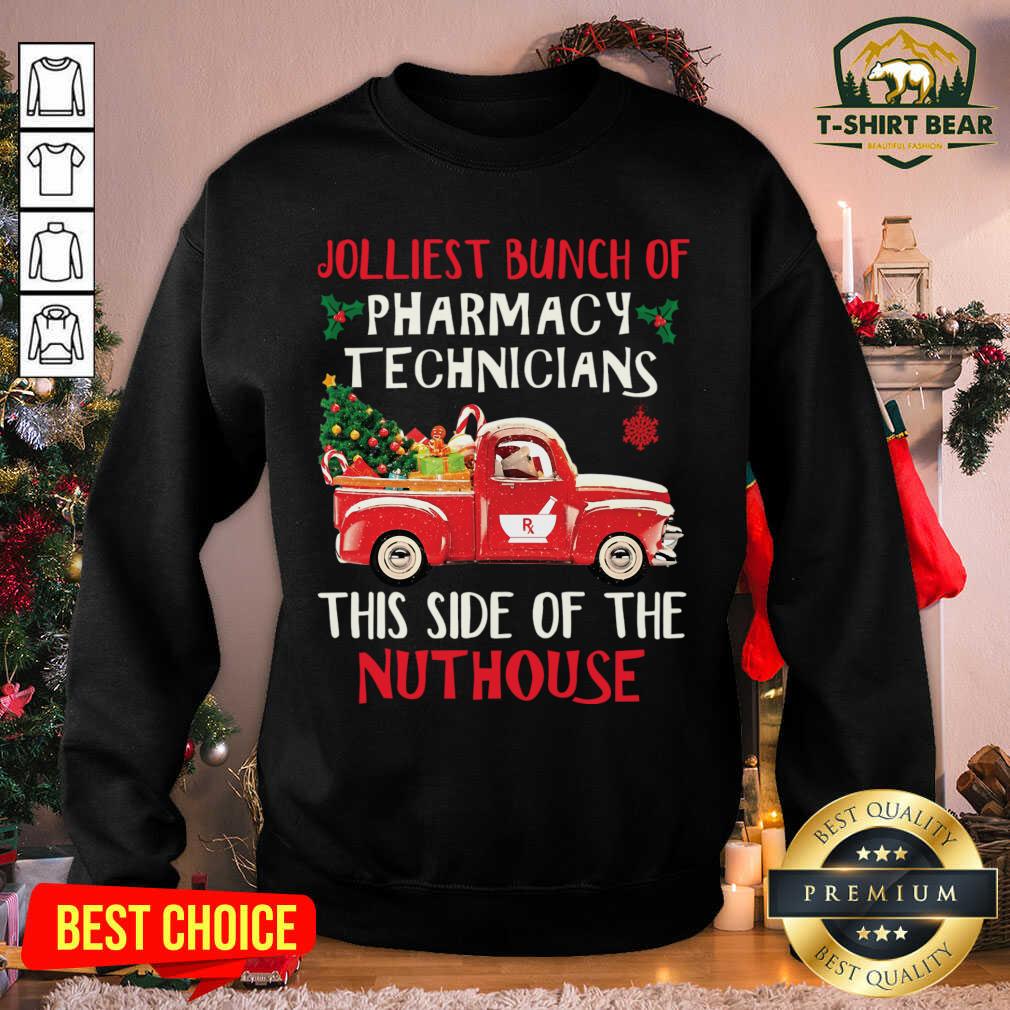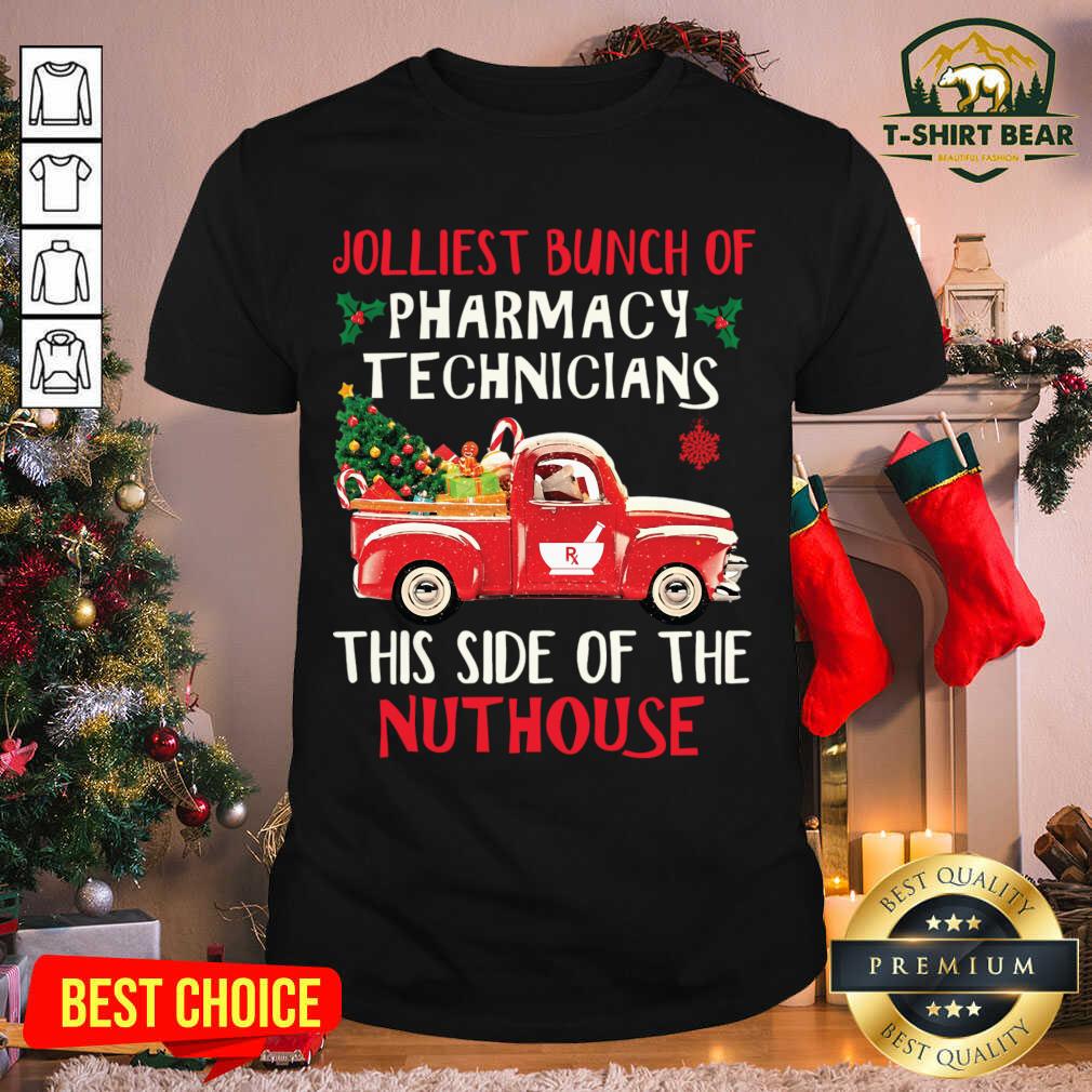 Hot Jolliest Bunch Of Pharmacy Technician This Side Of Nuthouse Car Red Xmas Shirt
