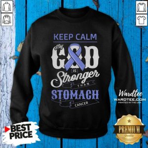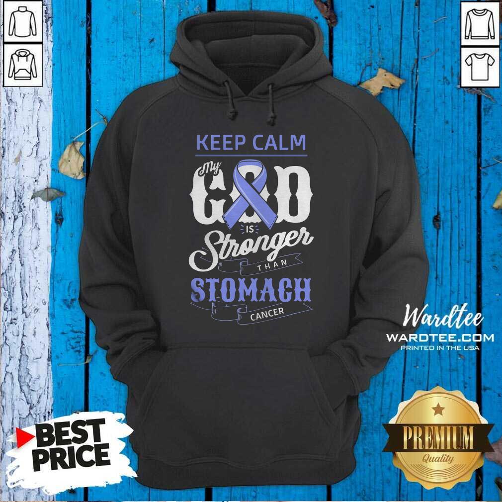 Hot Keep Calm My God Is Stronger Than Stomach Cancer Humor Shirt