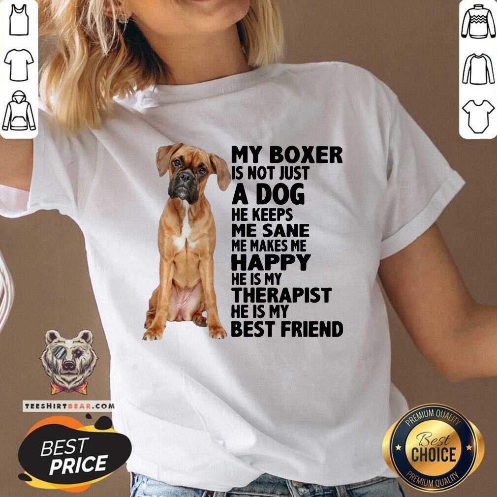 Hot My Boxer Is Not Just A Dog He Keeps Me Sane Me Makes Me Happy He Is My Therapist Best Friend Shirt