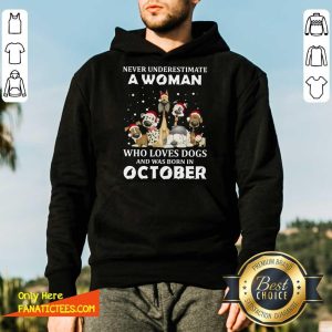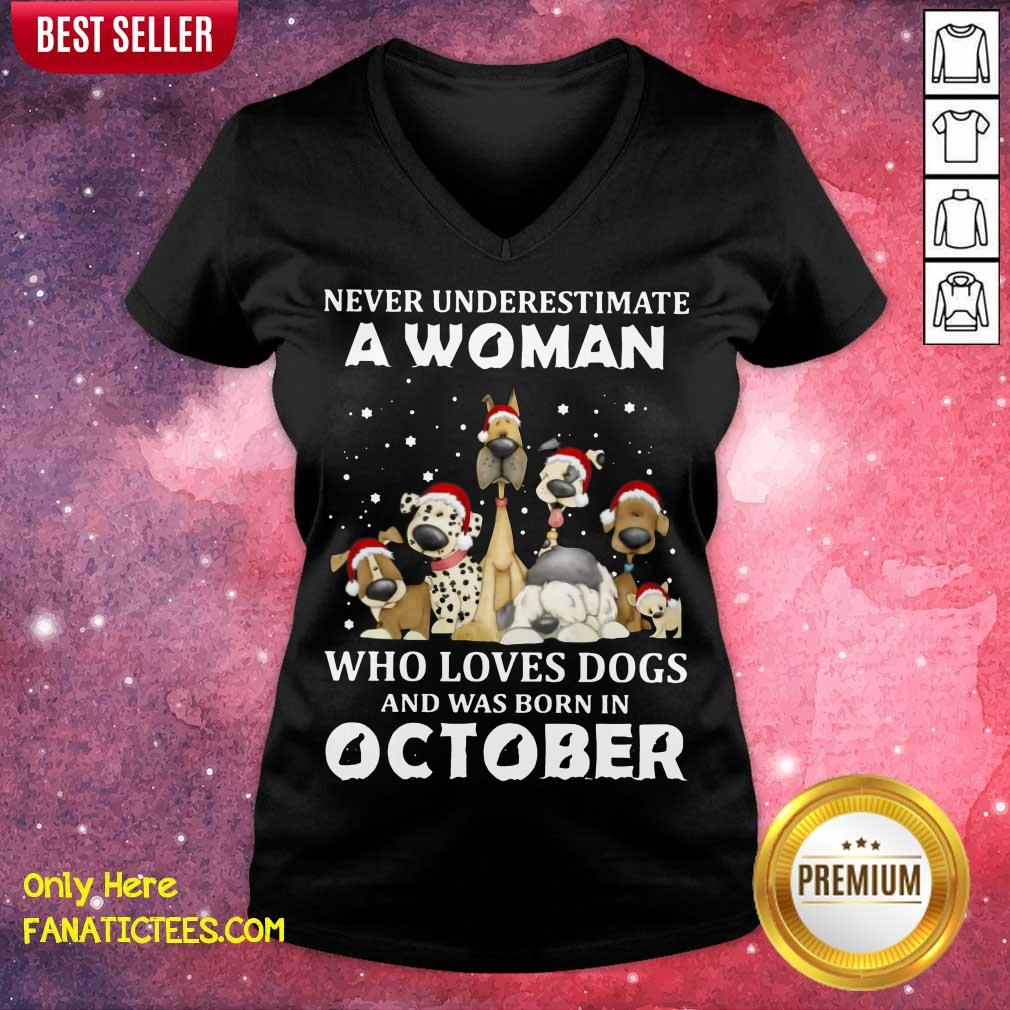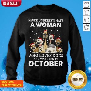 Hot Never Underestimate A Woman Who Loves Dogs And Was Born In October Christmas Shirt