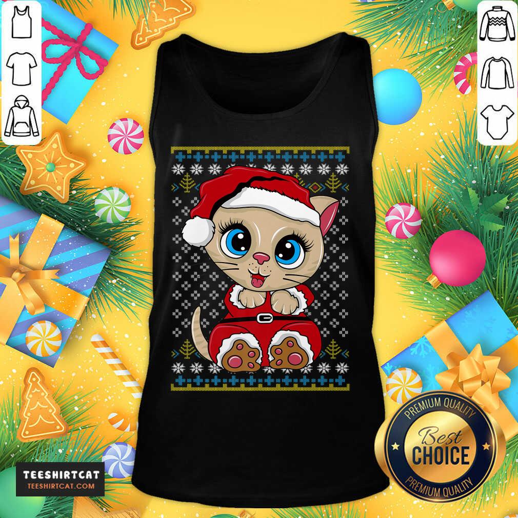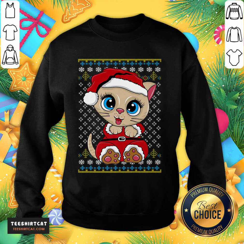Hot Santa Kitten Ugly Christmas Gift Xmas Cat Pajama Santa Kitty T-Shirt