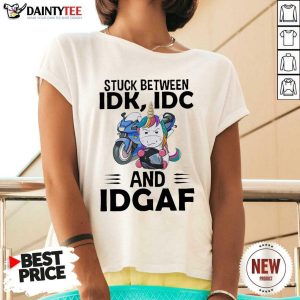 Hot Unicorn Stuck Between Idk Idc And Idgaf Shirt