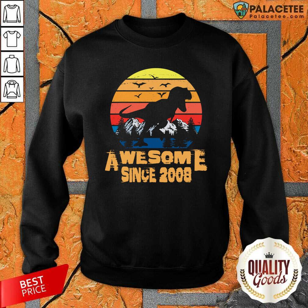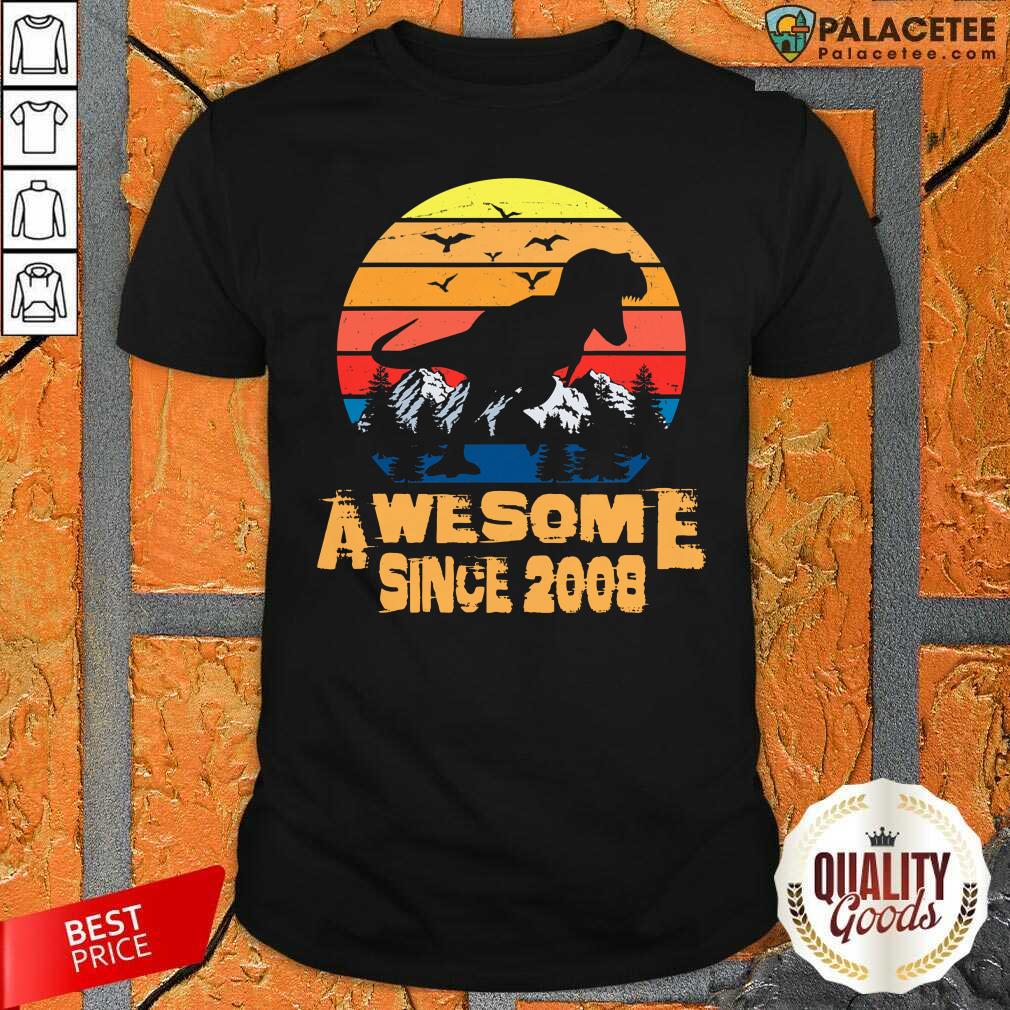 Hot Vintage Awesome Since 2008 13 Year Old 13th Birthday Gift For Dinosaur Boy Shirt