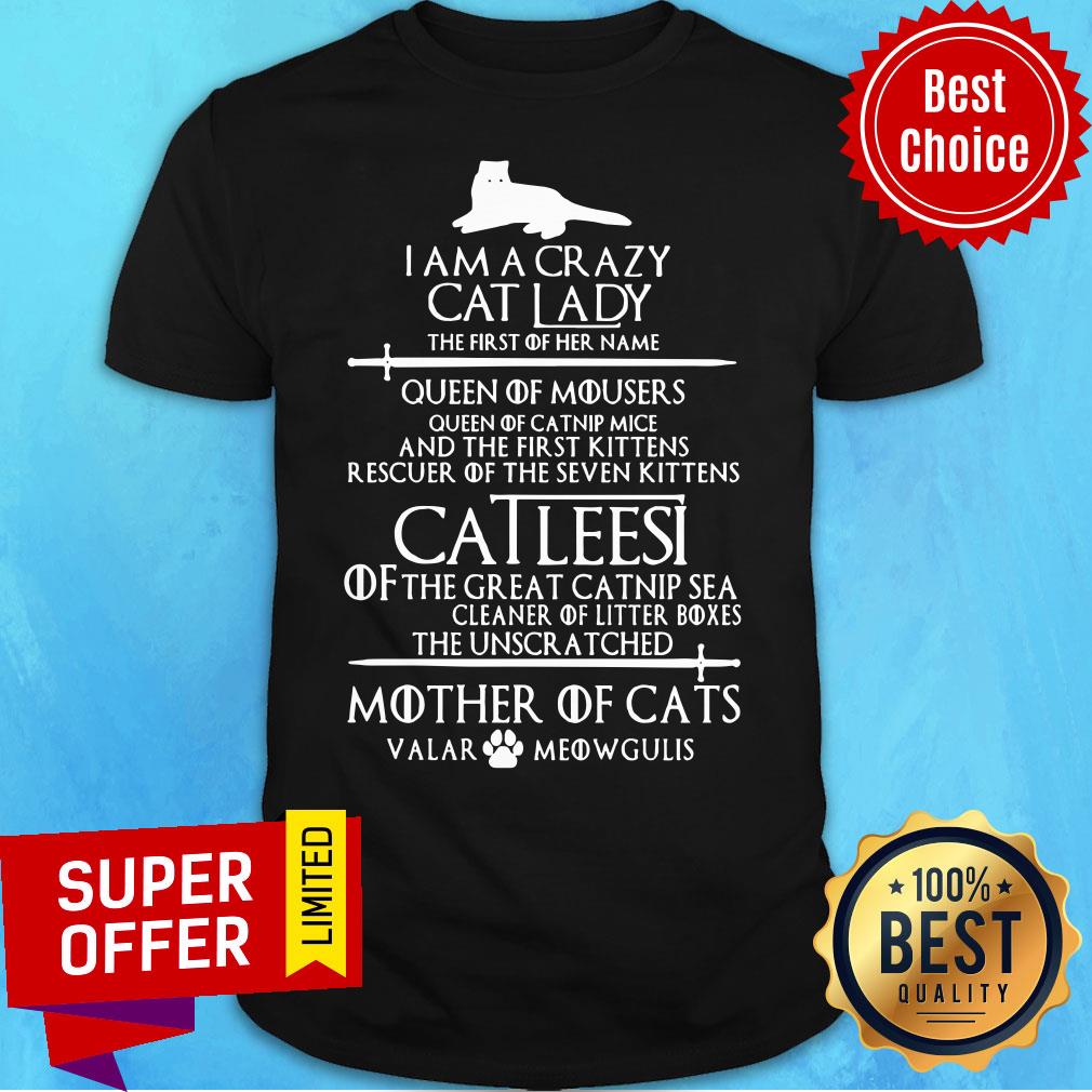 I Am A Crazy Cat Lady Catleesi Mother Of Cats Valar Meowgulis Shirt