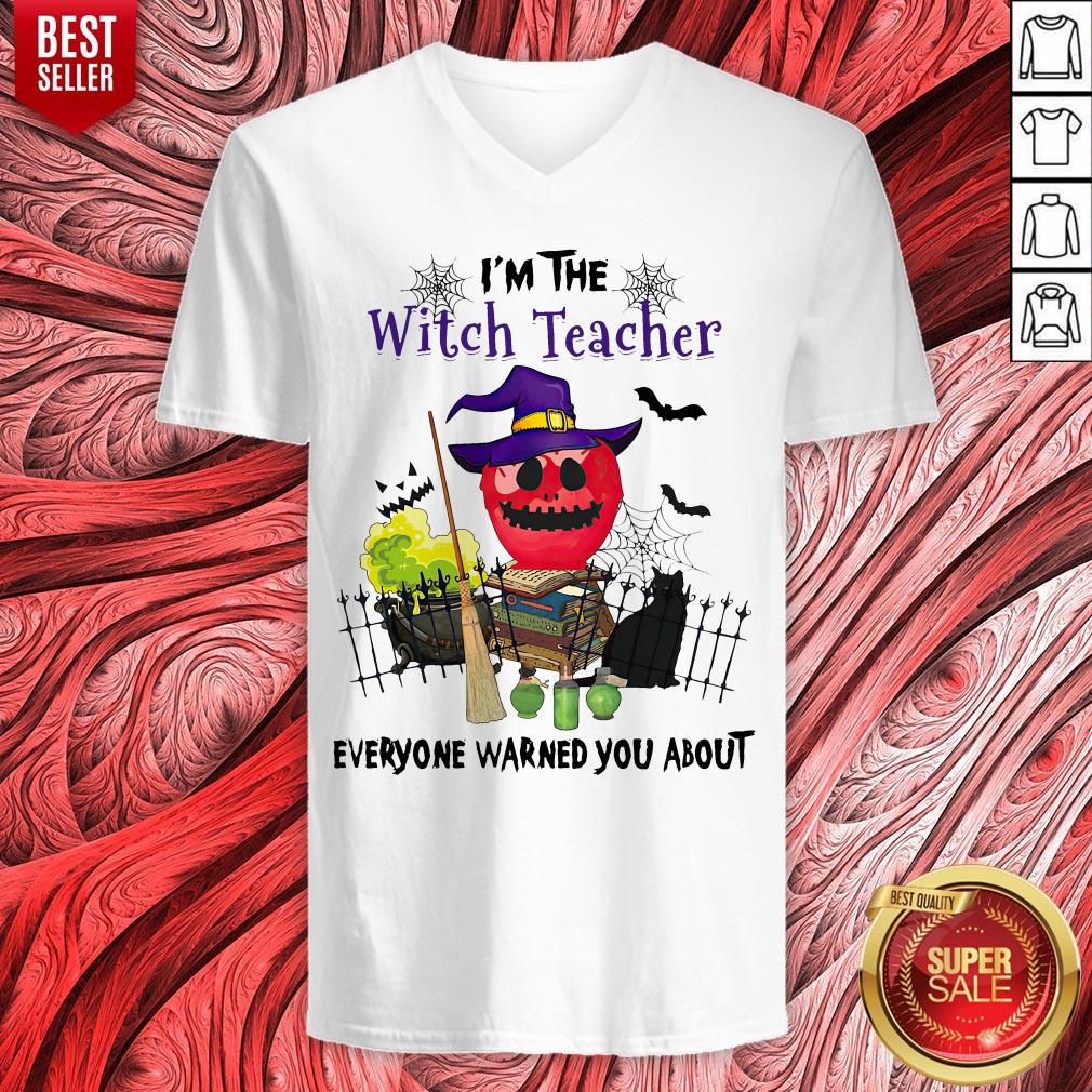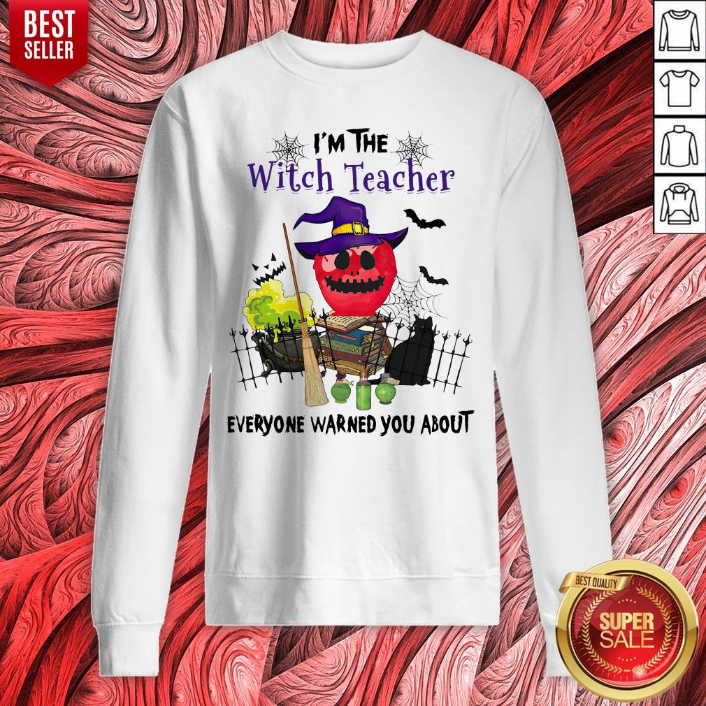 I’m The Witch Teacher Everyone Warned You About Poison Apple Black Cat Halloween Gift Educator School T-Shirt