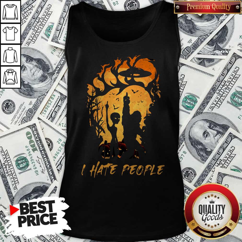 Love Halloween Bigfoot And Alien I Hate People Shirt