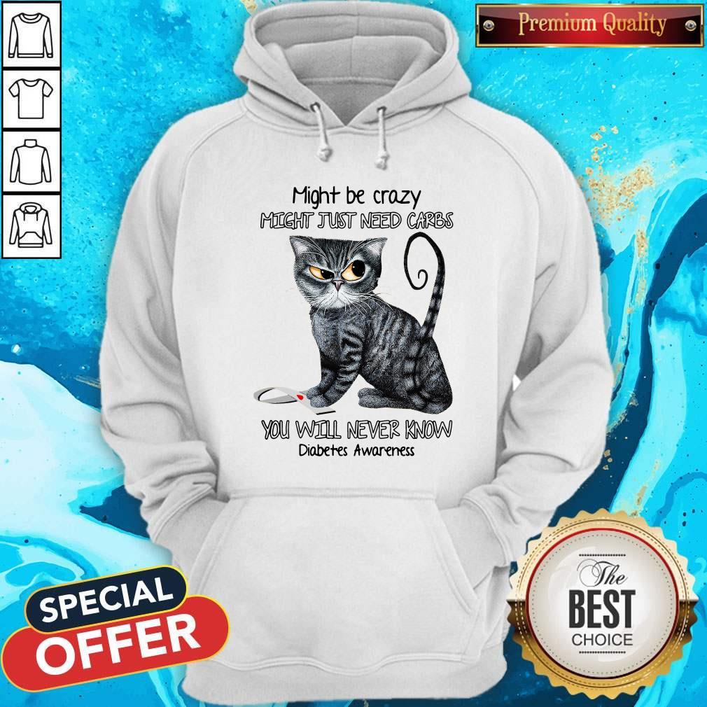 Explore more about the Might Be Crazy Might Just Need Carbs Diabetes Awareness Cat Shirt and make it yours today!