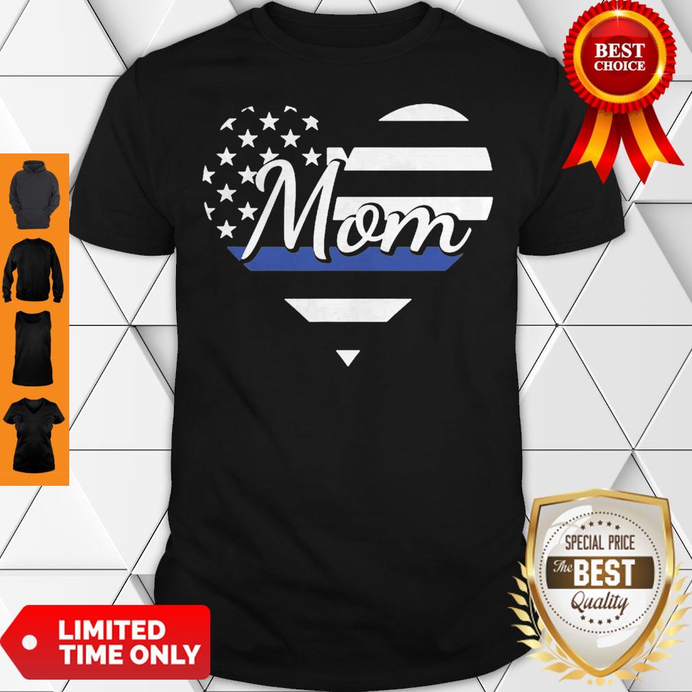Explore more about the Mom Of Police Officer Heart Thin Blue Line Family USA Flag Shirt and make it yours today!