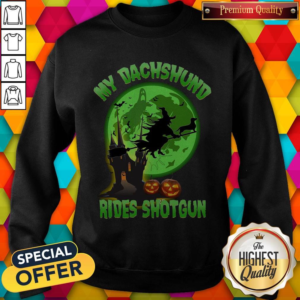 My Dachshund Rides Shotgun Halloween Moon Shirt