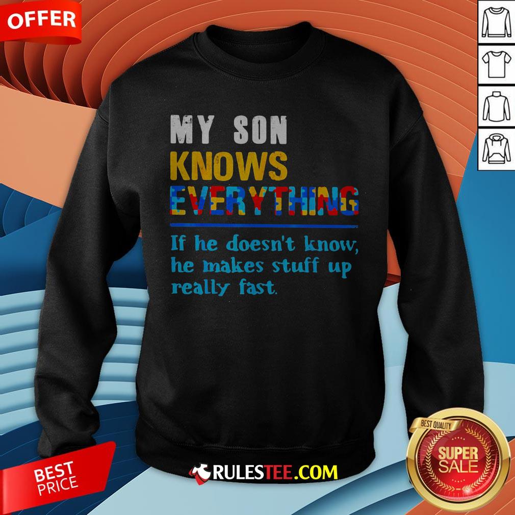 Explore more about the My Son Knows Everything If He Doesn’t Know He Just Makes Stuff Up Really Fast Shirt and make it yours today!