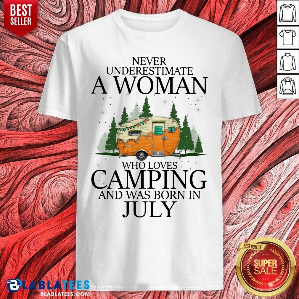 Never Underestimate A Woman Loves Camping July Shirt