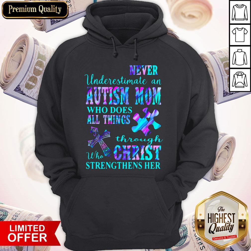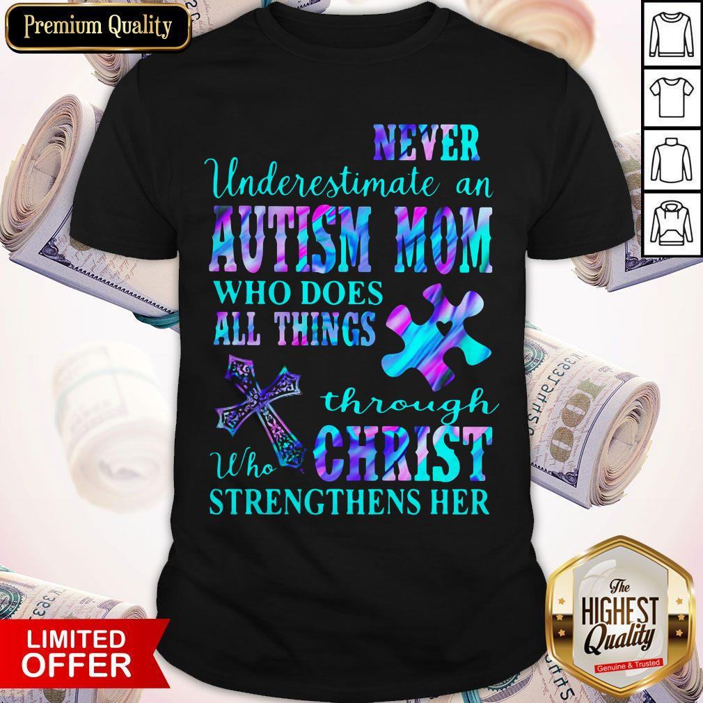 Explore more about the Never Underestimate An Autism Mom Who Does All Things Through Who Christ Strengthens Her Shirt and make it yours today!
