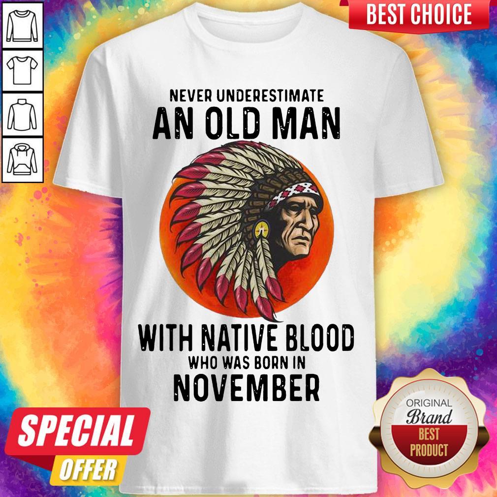 Never Underestimate An Old Man With Native Blood Who Was Born In November Sunset Shirt