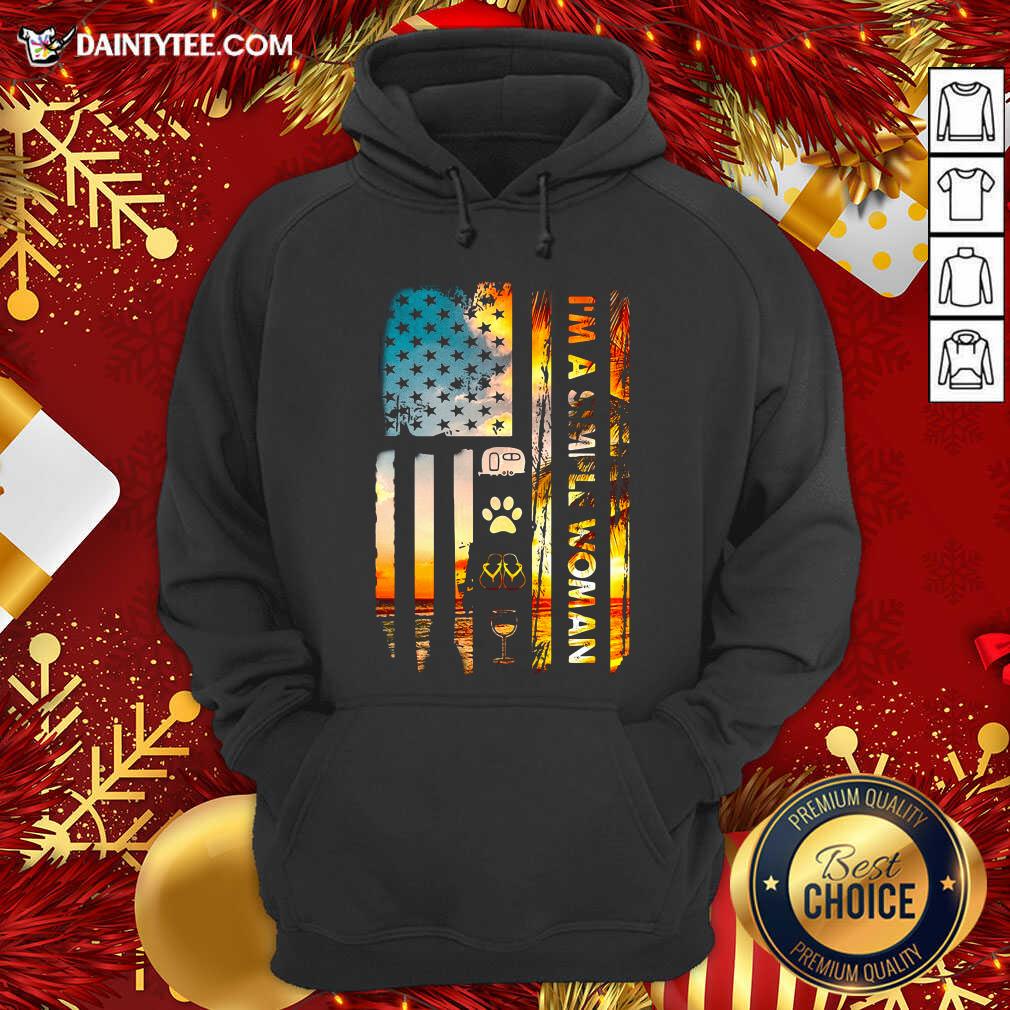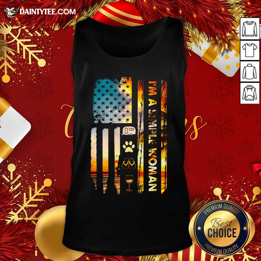 Nice American Flag I’m A Simple Woman I Like Camping Dog Paw Flip Flops And Wine Shirt