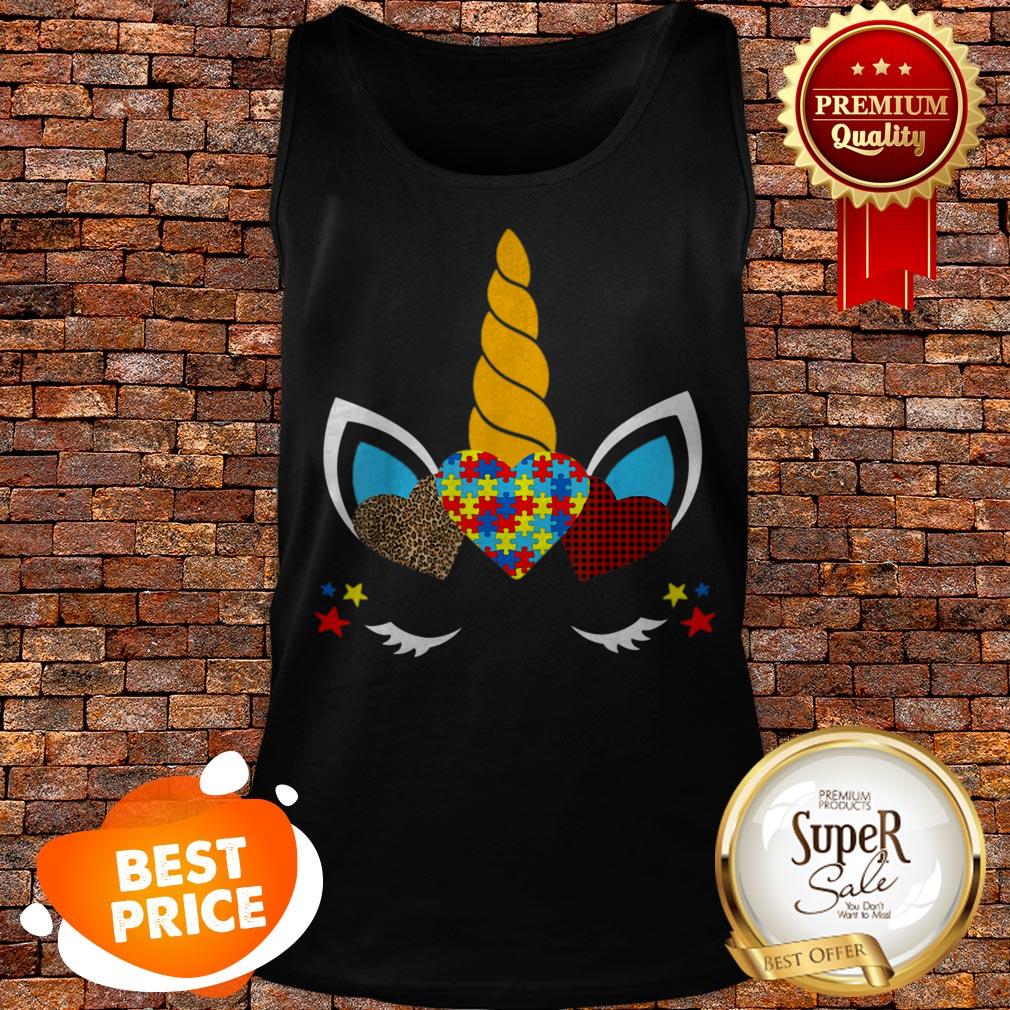 Nice Autism Awareness Unicorn Face Leopard Print Hearts Shirt