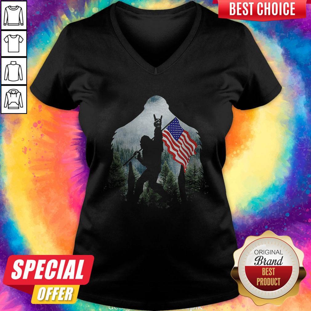 Nice Bigfoot Into The Forest USA Flag Shirt