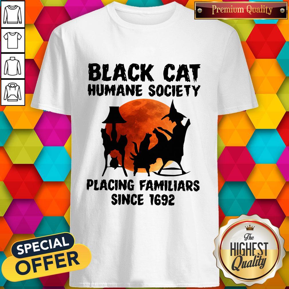 Nice Black Cat Humane Society Placing Familiars Since 1692 Shirt