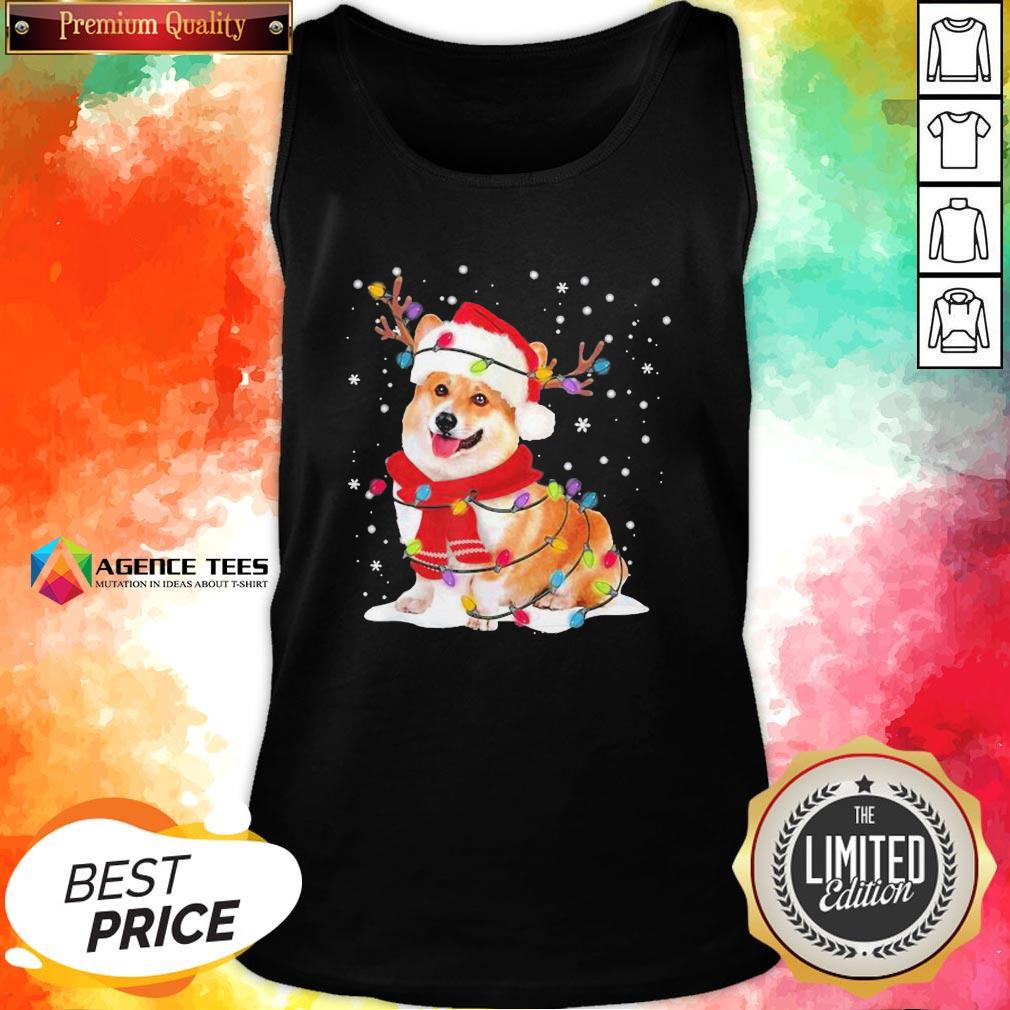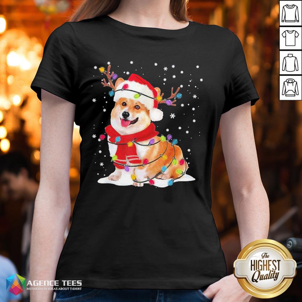 Nice Christmas Corgi Reindeer Lights Pajama Shirt