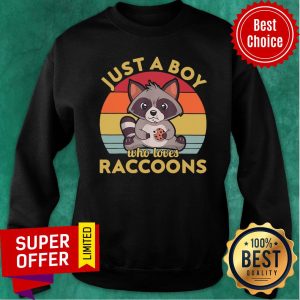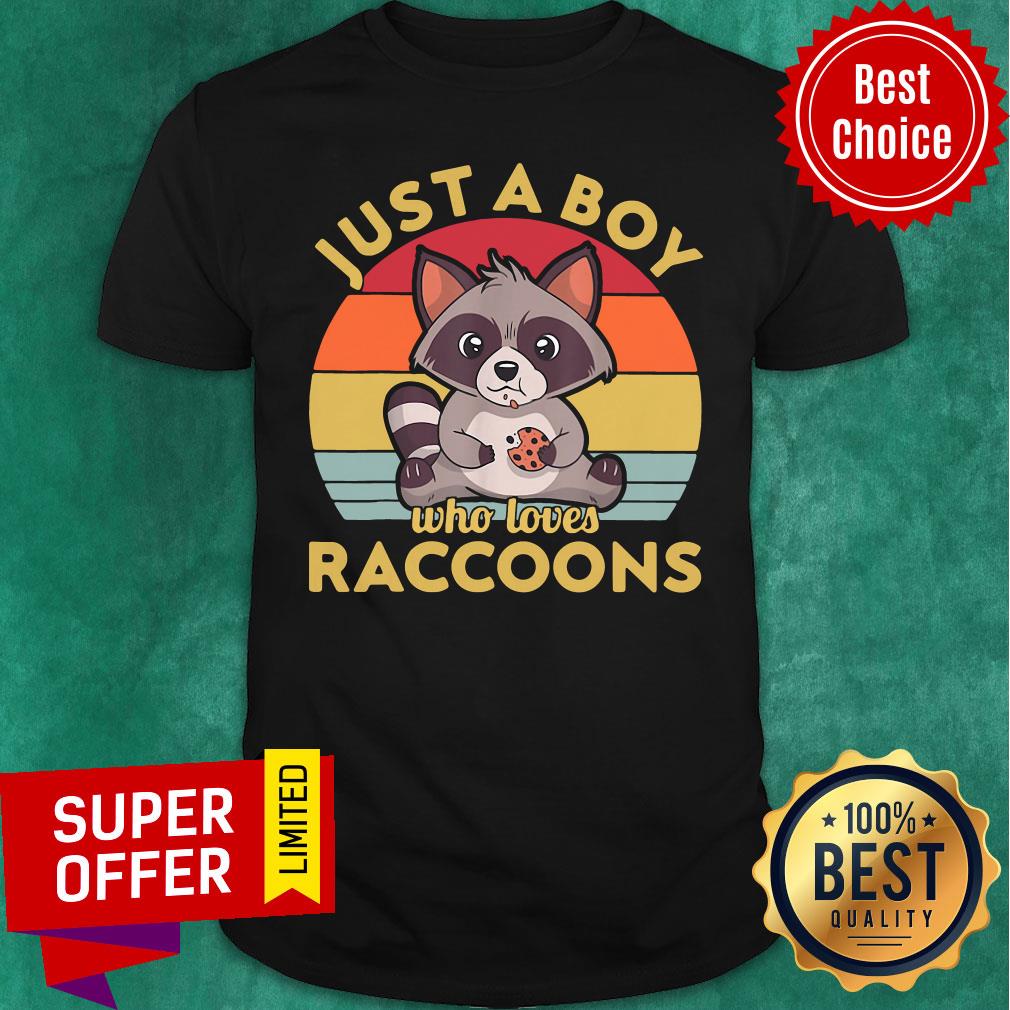 Nice Just A Boy Who Loves Raccoons Vintage Retro Shirt