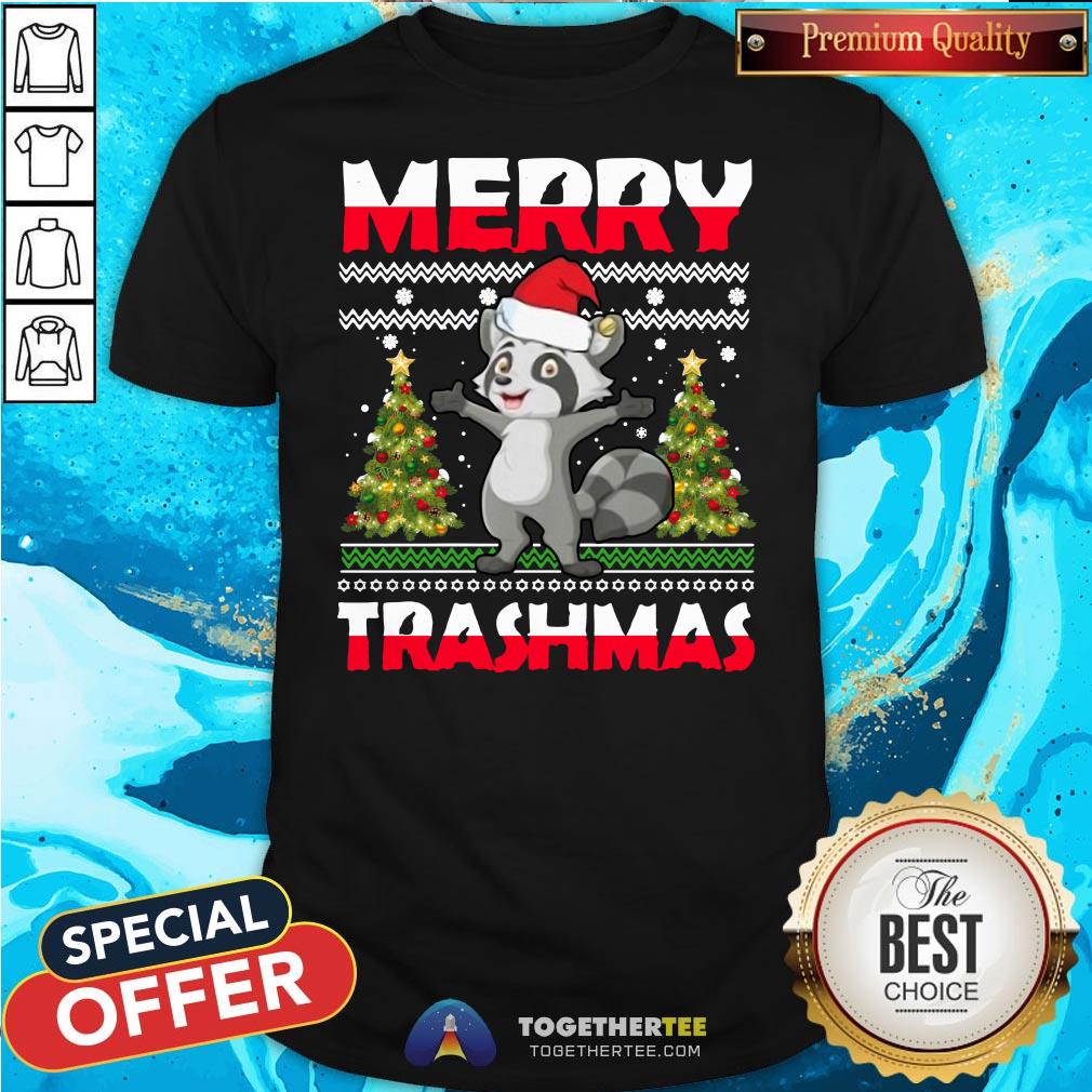 Nice Merry Trashmas Ugly Christmas Raccoon Family Pa Shirt