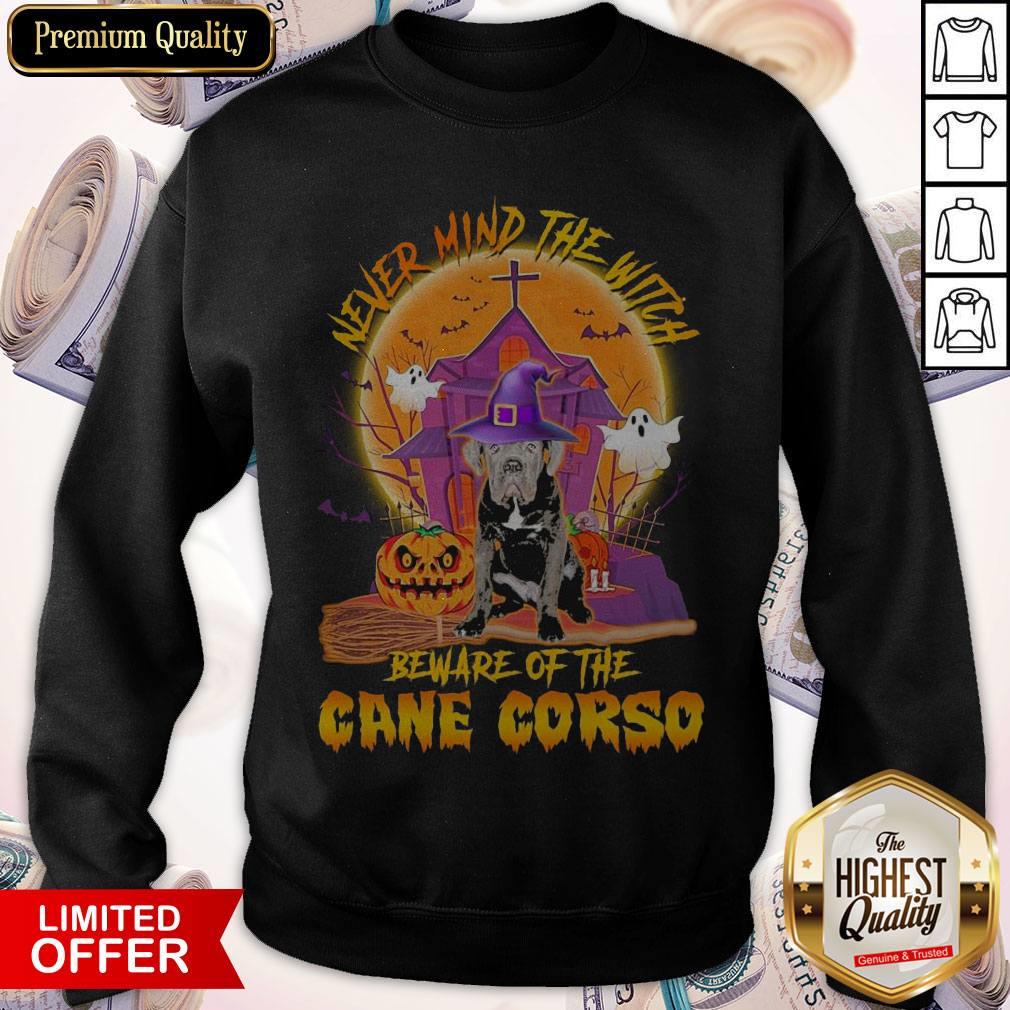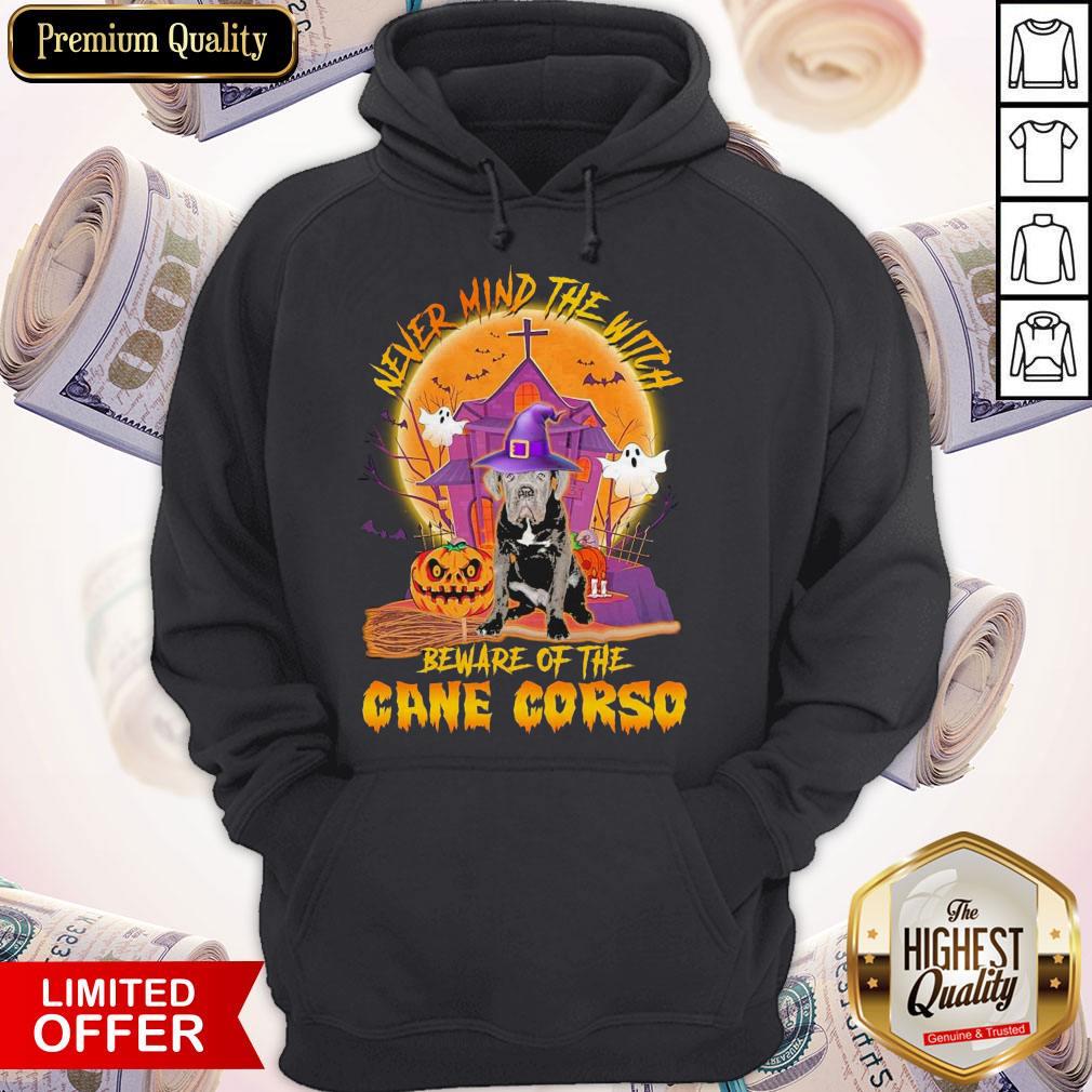 Nice Never Mind The Witch Beware Of The Cane Corso Halloween Moon Shirt