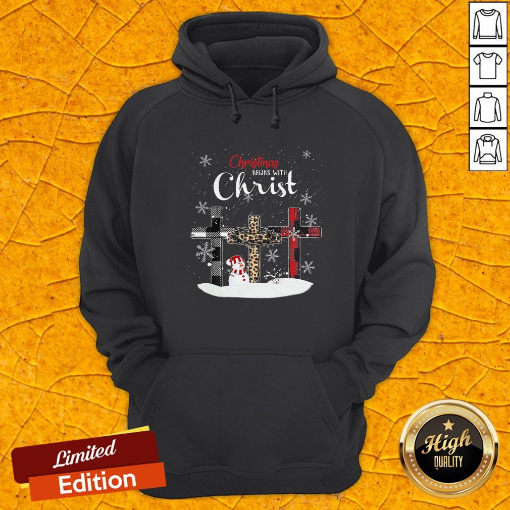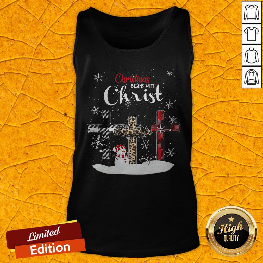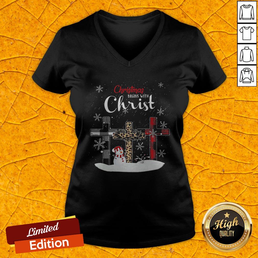 Nice Snowman Cross Christmas Begins With Christ Shirt