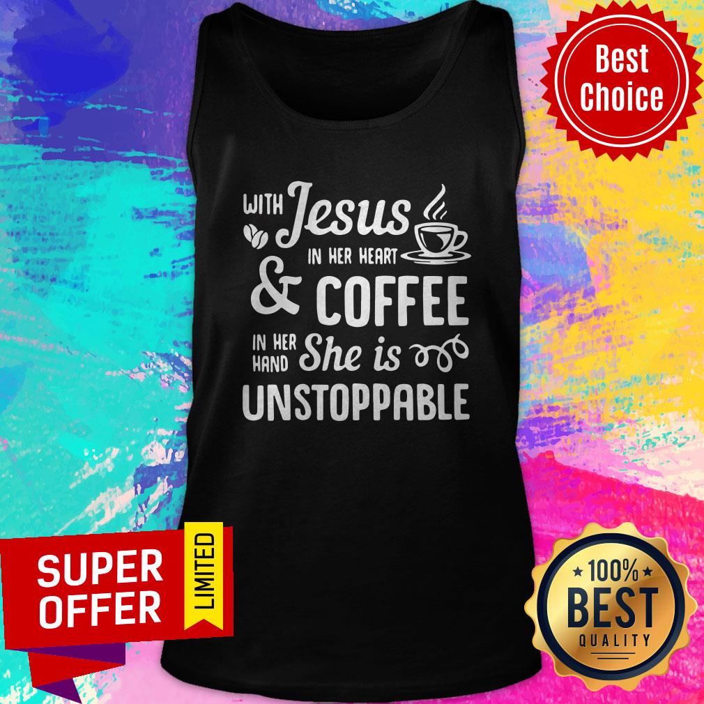 Nice With Jesus In Her Heart Coffee In Her Hand She Is Unstoppable Shirt