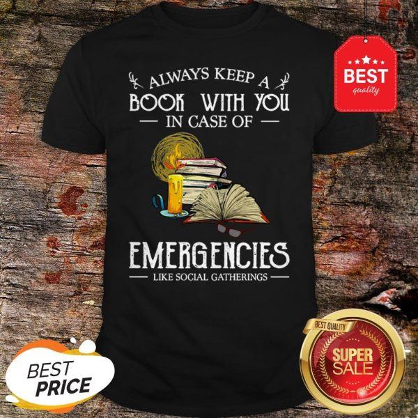 Explore more about the Official Always Keep A Book With You In Case Of Emergencies Social Gatherings Shirt and make it yours today!