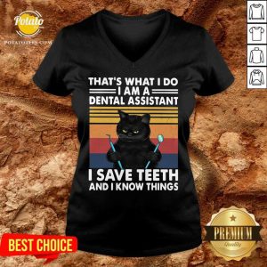 Official Black Cat That’s What I Do I Am A Dental Assistant I Save Teeth And I Know Things Vintage Shirt