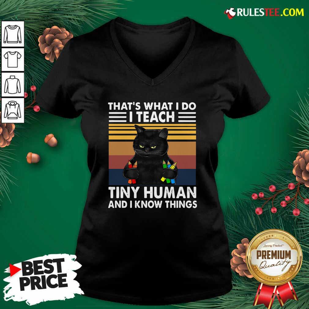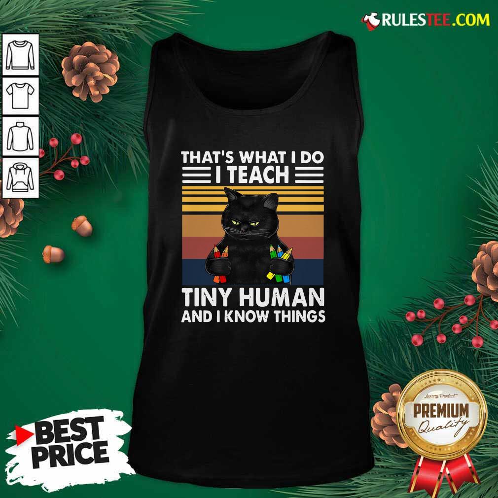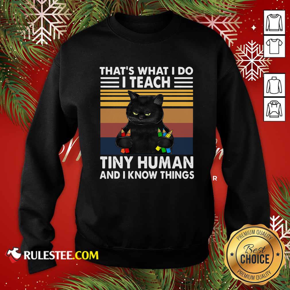 Explore more about the Official Black Cat Thats What I Do I Teach Tiny Human And I Know Things Vintage Shirt and make it yours today!